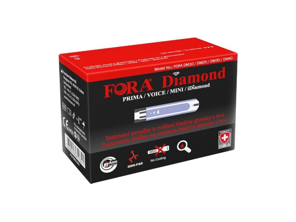 Testovací proužky do glukometrů Fora Diamond (PRIMA, MINI, iDiamond) jsou určeny pro měření glykemie v krvi. Pomocí enzymu GDH‑FAD minimalizují vliv interferujících látek jako je kyslík či maltóza a galaktóza a poskytují velmi přesné výsledky. Využívají čerstvé krevní vzorky z bříška prstu, dlaně, předloktí, nadloktí, lýtka a stehna. Systém neslouží k diagnostikování ani pro prověřování cukrovky.