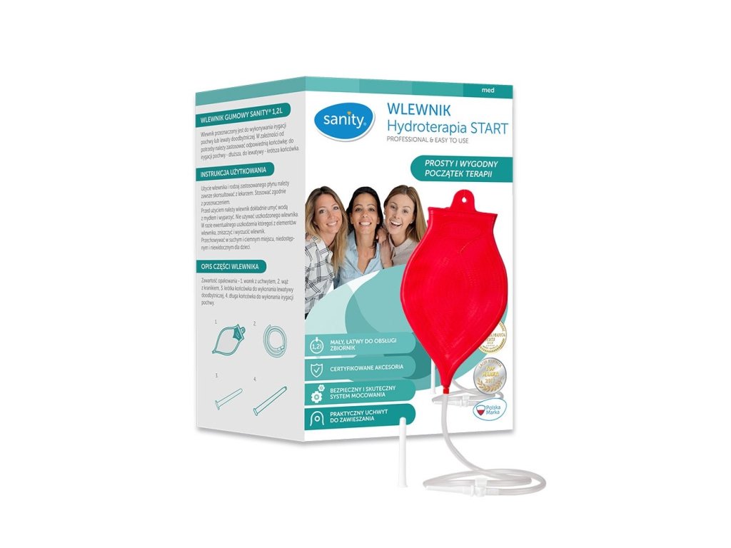 - Vybaveno dvěma tryskami – pro vaginální výplach a rektální klystýr.