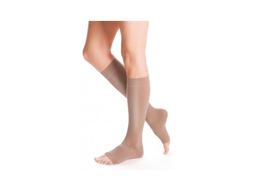 - vysoká elasticita nových materiálů tvořená vlákny Lycra® speciálně vyvinutými pro kompresivní výrobky usnadňuje oblékání punčoch a vytváří na končetině příjemný lesk