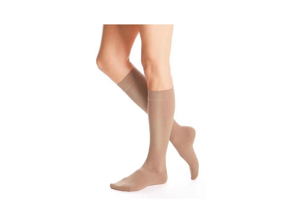 - vysoká elasticita nových materiálů tvořená vlákny Lycra® speciálně vyvinutými pro kompresivní výrobky usnadňuje oblékání punčoch a vytváří na končetině příjemný lesk